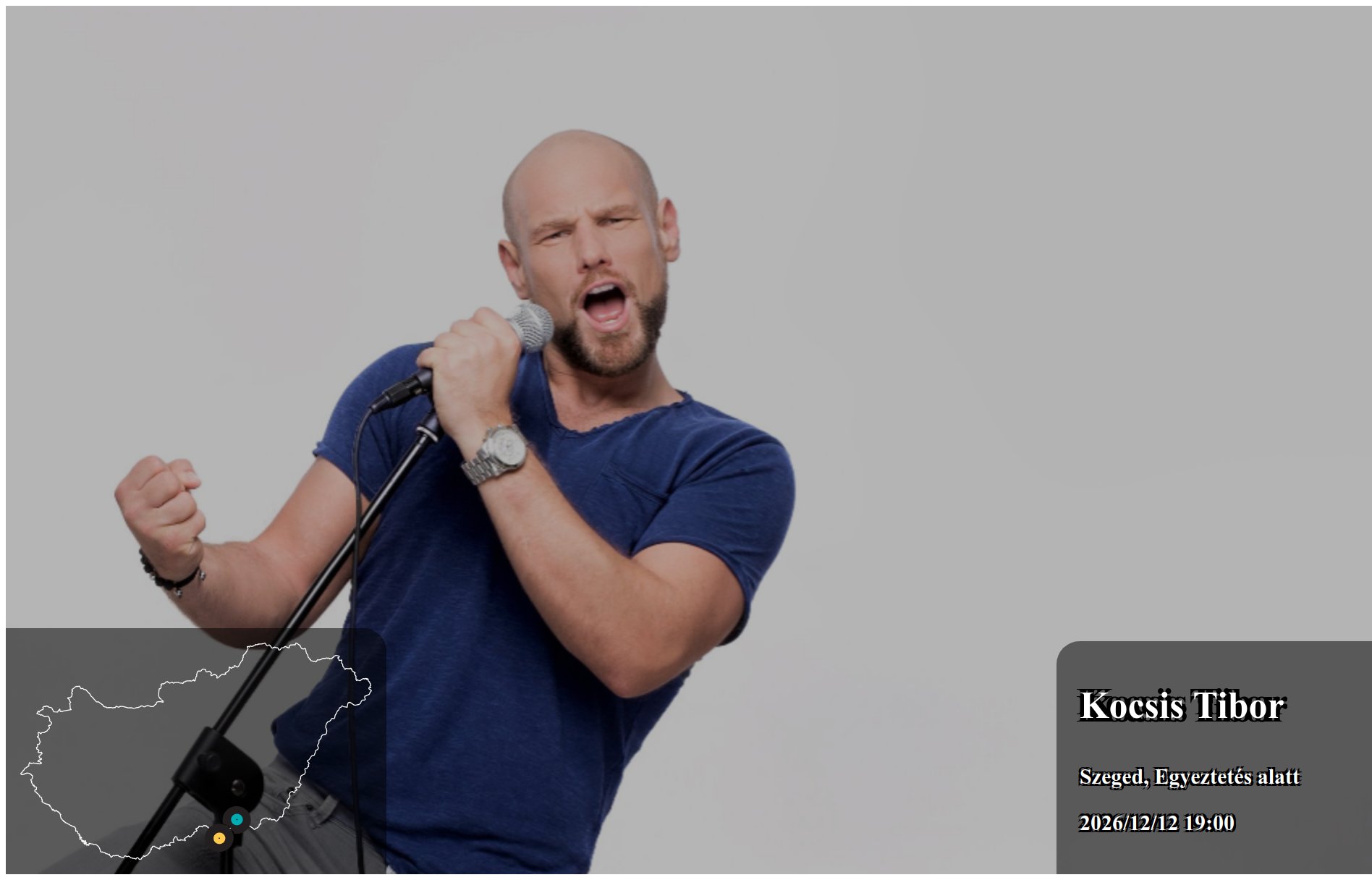 Kocsis Tibor 2026/12/12 19:00 Egyeztetés alatt fellépés